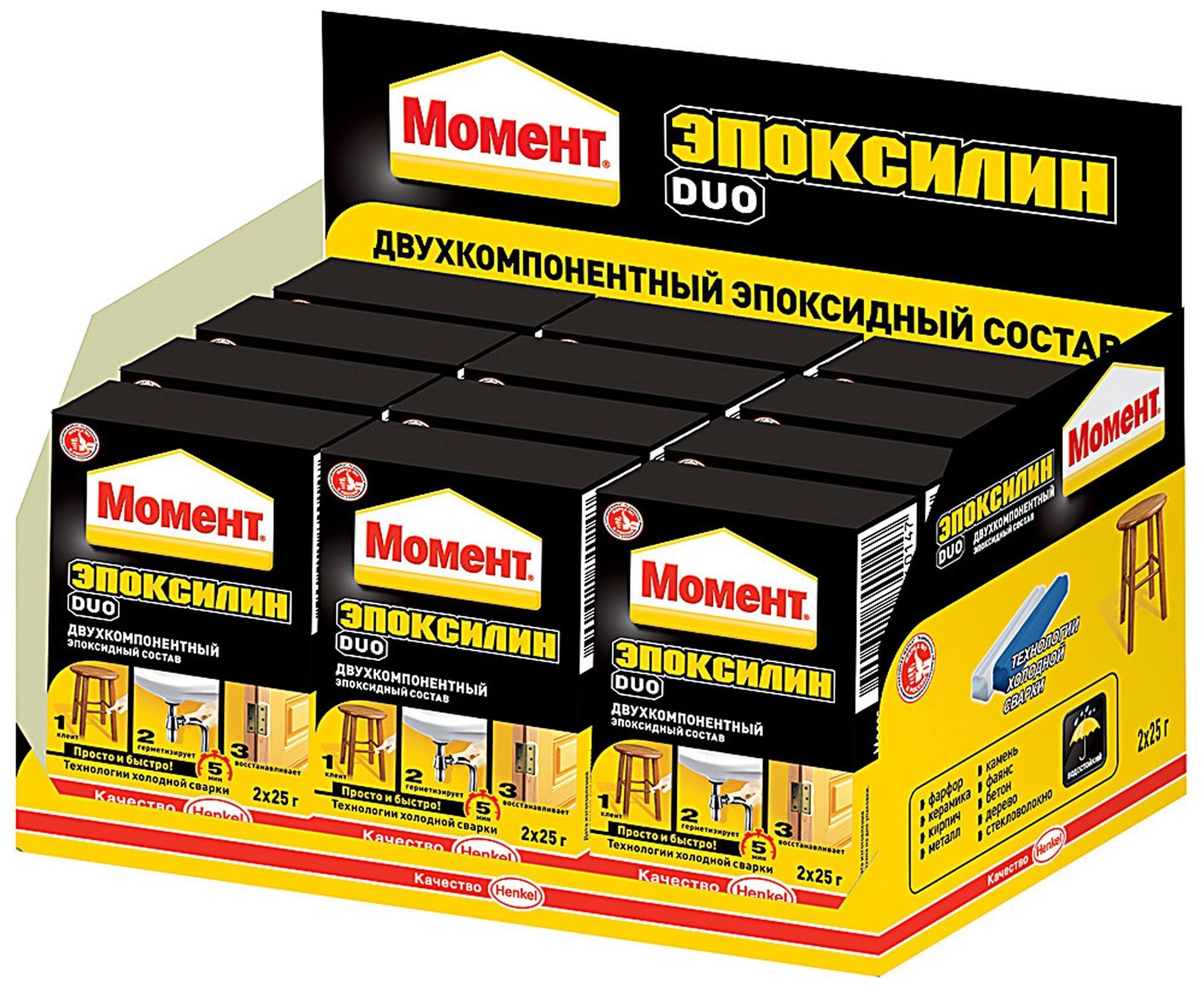 Момент эпоксидный является двухкомпонентным составом, прозрачный раствор с высоким пластичным свойством. Реализуется комплектом, включающим основную массу и отвердитель, которые смешиваются только перед нанесением на поверхность. Отмечается универсальность, пользоваться раствором можно для приклеивания следующих материалов: