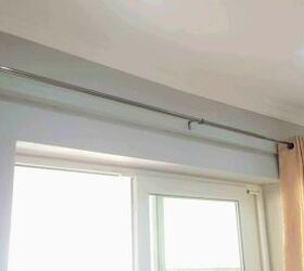 Мы рекомендуем устанавливать карниз на высоте 4 дюйма (10 см) над оконной рамой или на полпути между потолком и оконной рамой.