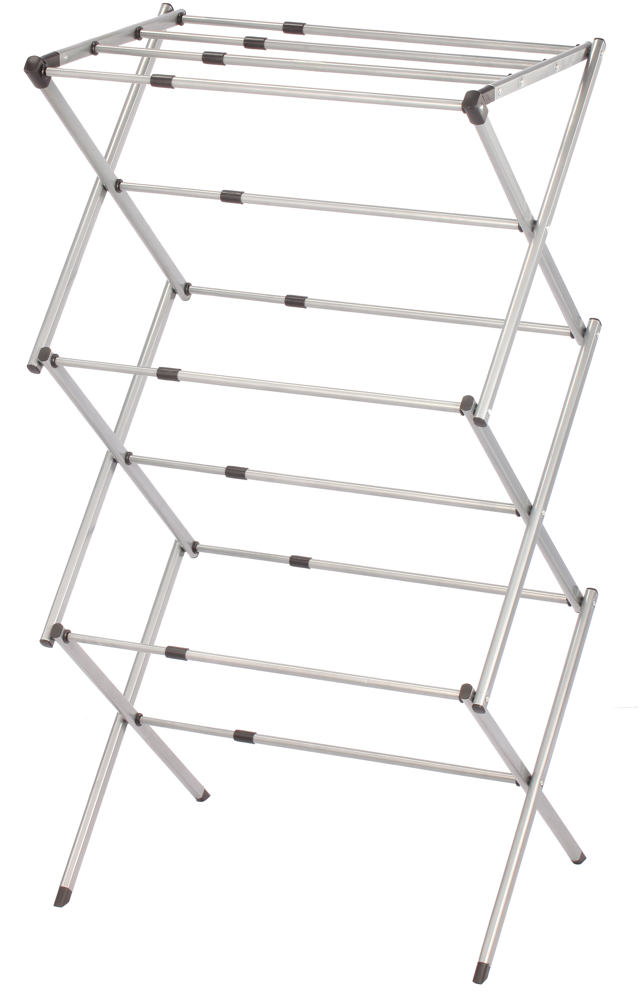 - стандартные – типовые конструкции, состоящие из каркаса, внутри которого установлены перекладины для развешивания вещей. Это дешевые, чаще всего металлические сушильные системы складного типа, на которых белье высыхает естественным образом;