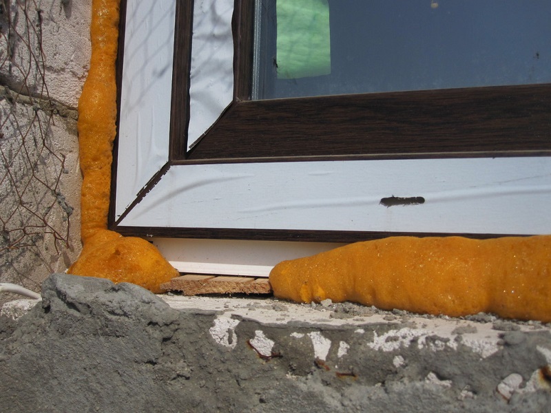 - Неправильное пропенивание откосов и подоконника и их промерзание