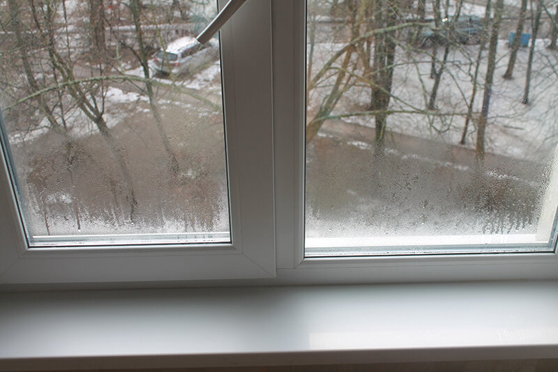 Самая холодная поверхность в отапливаемом помещении — оконное стекло. Поэтому пар, содержащийся в воздухе, всегда оседает на окнах.