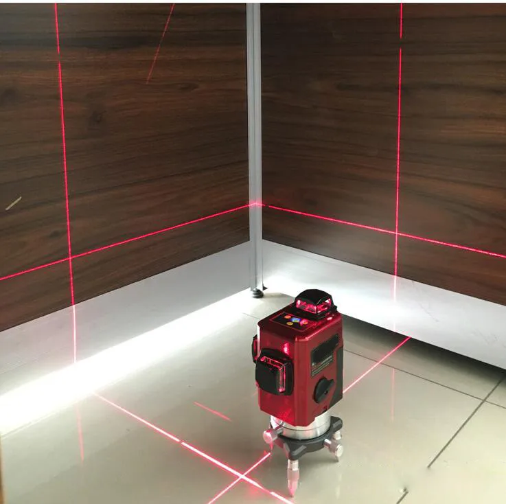 Как и иные нивелиры, заточен для отделочных и строительных мероприятий. В комплекте идет стандартный пластиковый кейс. Создает и вертикальные и горизонтальные линии. В случае яркого света в комплекте имеются лазерные очки, в которых луч будет виден. Этот прибор может спроецировать до 12 линий в режиме 3D. Три окна, при этом каждое создает четыре лазерные линии. Дальность измерений до 30 метров. Выравнивание происходит автоматически. Работает от литиевой аккумуляторной батареи с емкостью 3000 мА*ч.