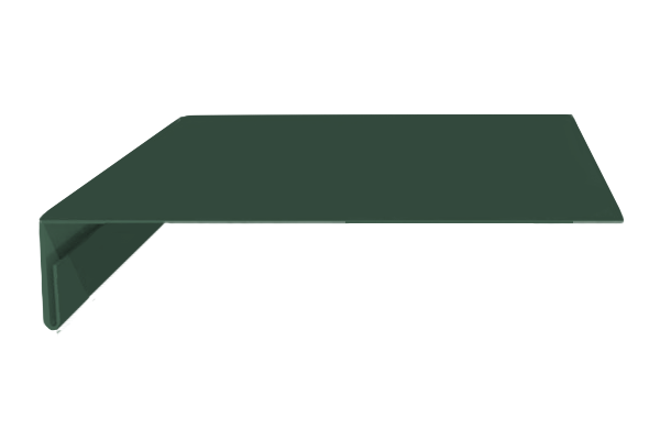 Устанавливается по карнизу крыши, закрывает подкровельную конструкцию от попадания влаги извне, препятствует намоканию и гниению настила в зоне карниза. Планка предотвращает образование подтеков на фасаде, эффективно отводя воду с кровли в водосток.
