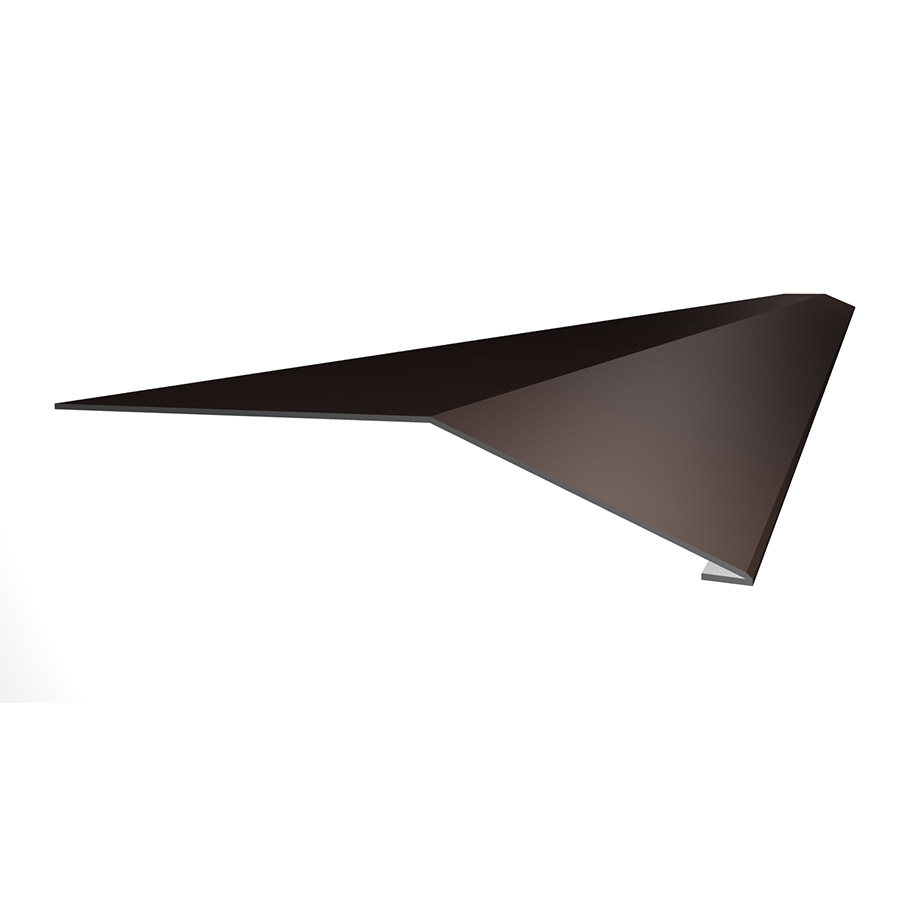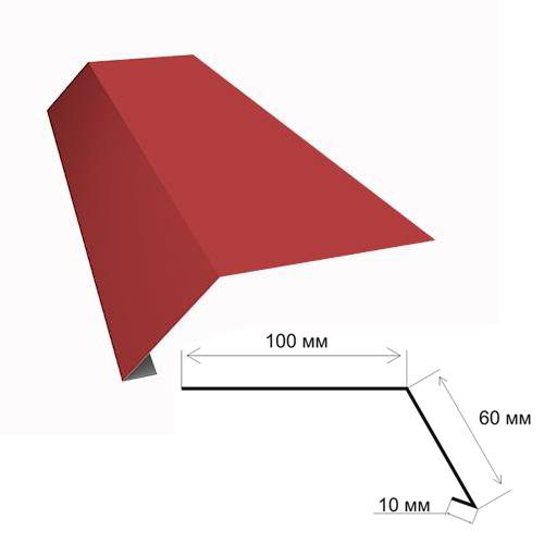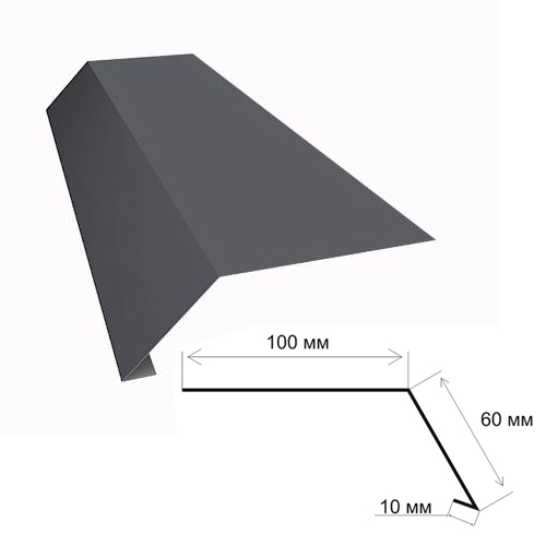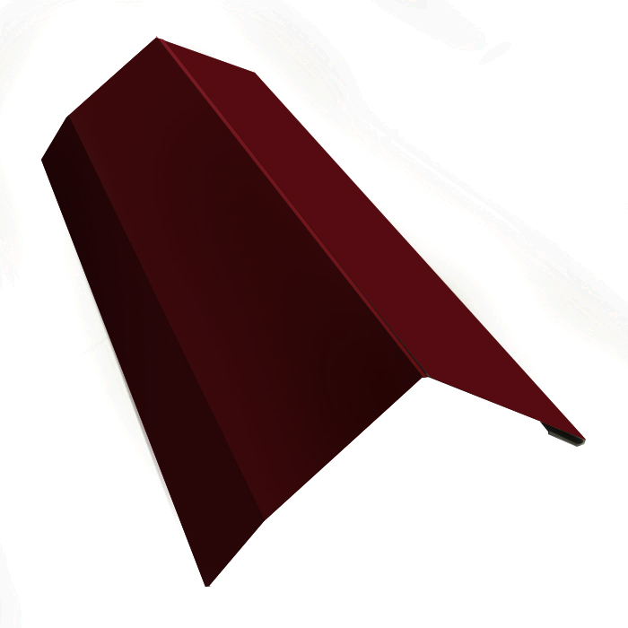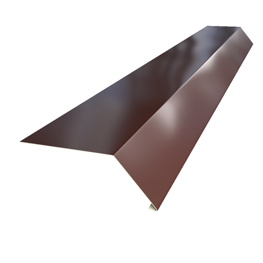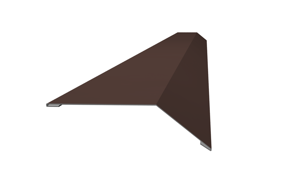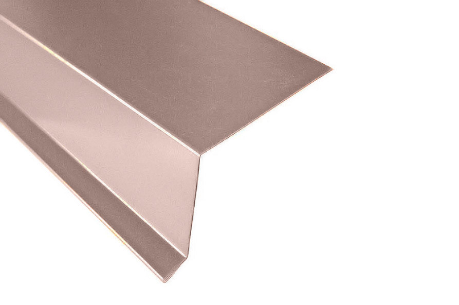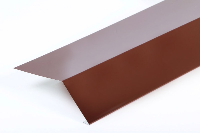Предназначена для герметизации краев ската. Монтируется вдоль фронтонов. Защищает все элементы кровельного пирога от задувания атмосферных осадков, птиц, грызунов, мусора через торцы крыши. Такая планка, к тому же, отводит воду от подшивки карниза. Без нее строение выглядит не эстетично, имеет незаконченный вид крыши в разрезе. Главная функция торцевой планки — защита от порывов ветра, которые расшатывают крепление всей конструкции кровли.Изготавливается из оцинкованной стали с полимерным покрытием в тон основного кровельного материала. Покрытие полимерным составом предотвращает коррозию и выцветание планки.