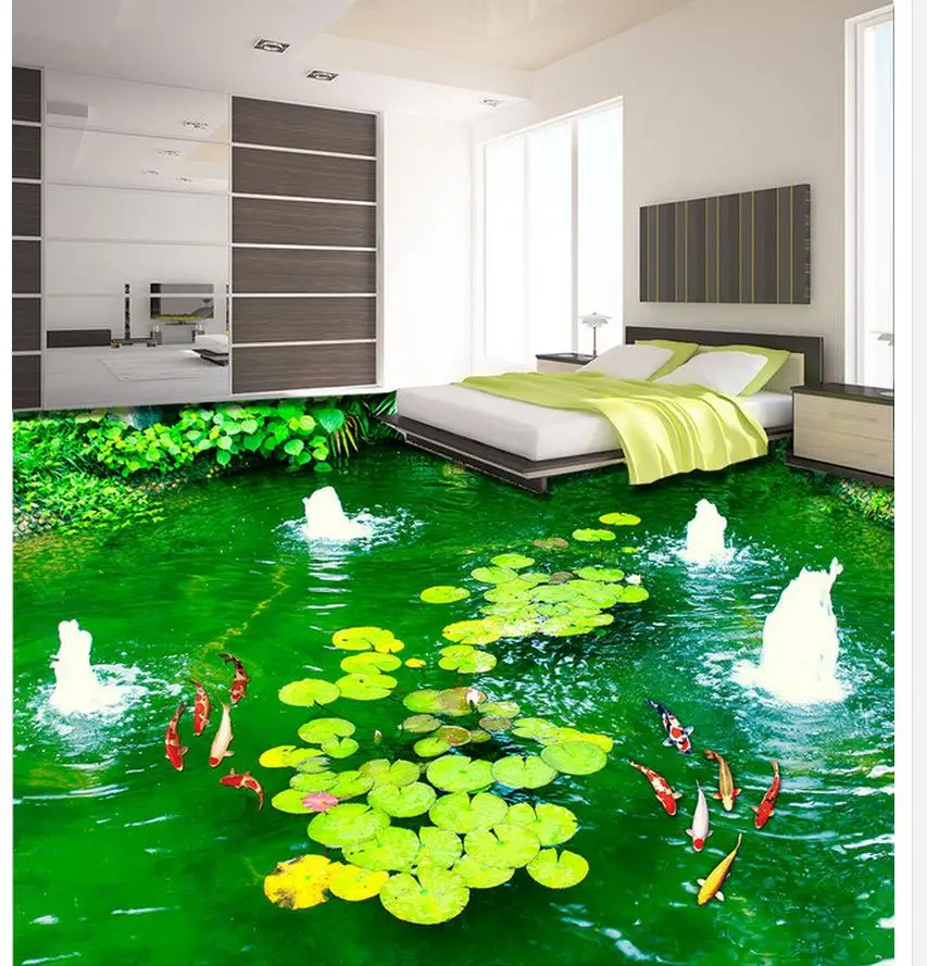 По запросу «наливной пол» в поиске выдаёт ванные комнаты и туалеты, где на полу нанесены изображения джунглей, облаков или морского дна. На практике вместо картин мастера заливают какую-то серую текучую смесь.