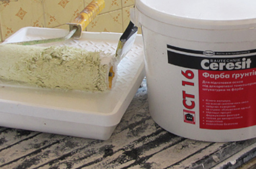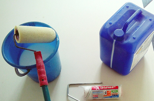 Для нанесения грунтовки на стены лучше всего подойдет краскопульт или распылитель. Если это невозможно, можно использовать также валик или малярную кисть. Валик должен быть мягким, с длинной ручкой, чтобы было удобно работать, стоя на полу. Способ с применением кисти трудоемкий, но обеспечивает глубокое проникновение смеси, поэтому при небольшой площади обработки стоит остановиться на нем. Также понадобится пластиковое корытце, в которое грунтовка наливается в небольшом количестве.