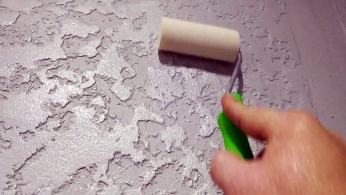 При этом происходит замена рабочего инструмента. Второй слой наносится валиком с коротким ворсом. Это позволяет закрасить выступающие части рельефа, не более.