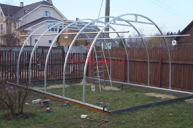 Обязательно надо определиться с длиной теплицы, и рассчитать количество основных составляющих каркаса. Дуги необходимо устанавливать с промежутком не более метра.