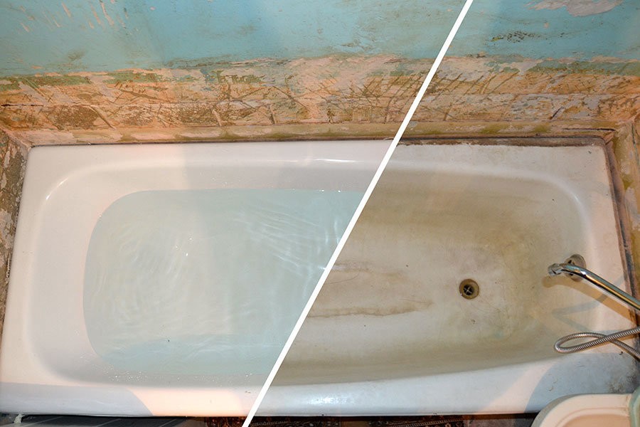 Остатки ржавчины, жира и чистящих средств снижают адгезию средств для повторной эмали, поэтому перед нанесением эмалевой краски необходимо тщательно очистить ванну.