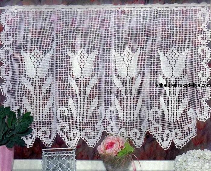 Описание вязания красивой шторы для кухни